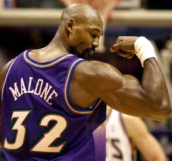 Los brazos de Malone son cada uno dos sacos de cemento…. sin duda el más fuerte entre los más fuertes de la historia.
